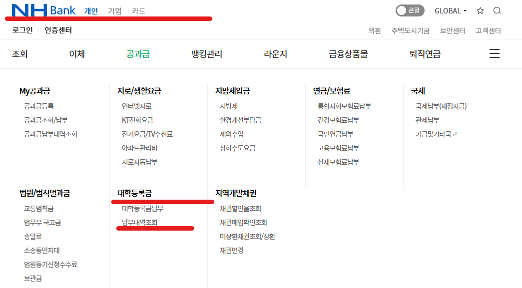 📌 4. 등록금 납부내역 확인 방법(전북은행)
